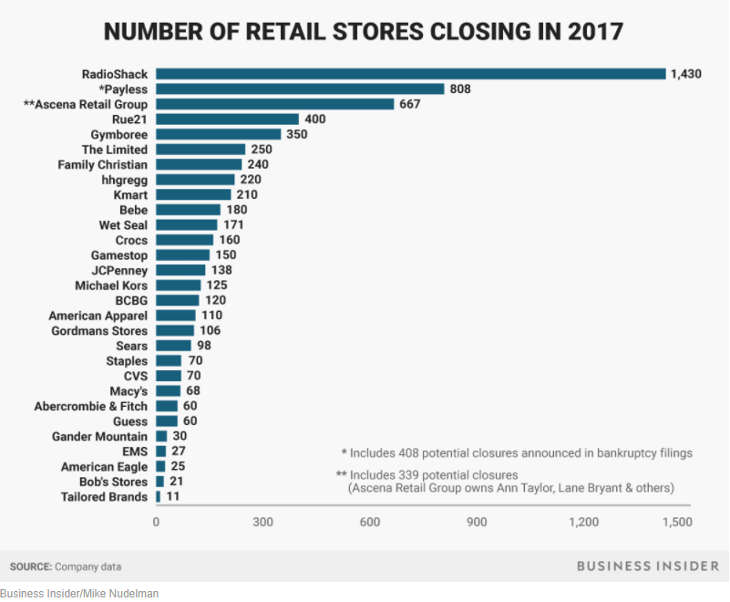 As a result, the retail landscape is changing at a meteoric pace. These companies have increased customer expectations and the cost of delighting consumers. At the same time, they’ve cut costs and continue to grow while maintaining razor thin margins. The impact? Extinction level events are happening thousands of times per year.